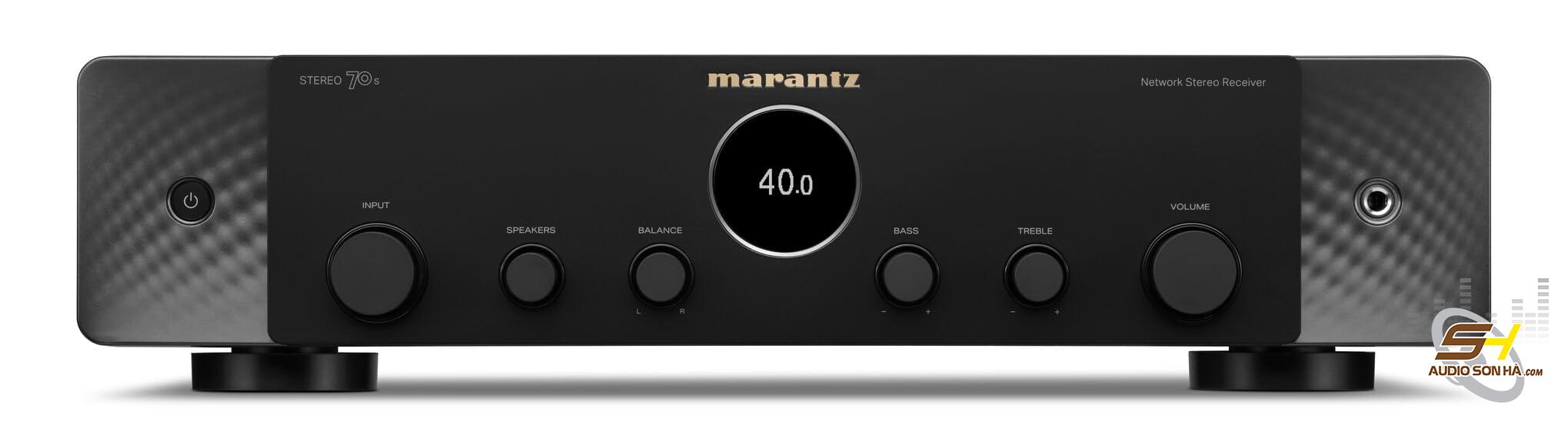 Amply Marantz Stereo 70s được thiết kế với mục tiêu tái hiện lại chất âm thanh nổi thập niên 70 cùng trải nghiệm xem phim tại nhà nghiêm túc chỉ với hai loa. Kiểu dáng nhỏ gọn, vẻ ngoài sang trọng cùng nhiều công nghệ có trong bộ thu AV âm thanh vòm trong một bộ thu âm thanh nổi, mỏng. Công suất 75W mỗi kênh, có HDMI 8K, đầu ra loa siêu trầm và tích hợp tính năng phát trực tuyến đưa người dùng bước vào một thế giới mới của hiệu suất cao, di sản lâu đời và tay nghề thủ công huyền thoại.