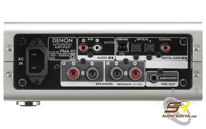 Bộ khuếch đại PMA-60 mang lại âm thanh đậm chất Denon, với hiệu suất vượt trội mặc dù kích thước nhỏ gọn của nó. Để làm được như vậy là nhờ vào cách sử dụng công nghệ mà Denon phát triển trong nhiều năm, chẳng hạn như xử lý âm thanh AL32 nâng cao (Advanced AL32 audio processing) nó sử dụng để biến dữ liệu kỹ thuật số thành những giai điệu mượt mà. Với kết nối analog và kỹ thuật số cũng như Bluetooth®, âm thanh được streaming trực tiếp từ máy tính của bạn hoặc thiết bị di động đến ampli một cách dễ dàng. Và nếu bạn quan tâm đến âm thanh có độ phân giải cao, amp này sẽ là lựa chọn hoàn hảo cho bạn nhờ ngõ vào USB-B của nó. Công suất ampli là 50W trên mỗi kênh giúp nó phối ghép với nhiều loại loa khác nhau. Thiết kế nhỏ gọn của nó cho phép nó vừa với không gian hạn chế và thậm chí bạn có thể đặt PMA-60 theo chiều dọc - hướng của màn hình OLED sẽ điều chỉnh cho phù hợp.