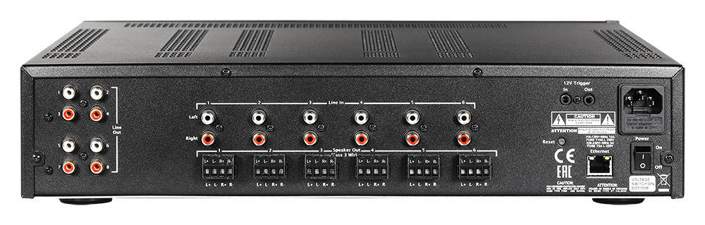 Tất cả các bộ khuếch đại đa kênh của chúng tôi đều có đầu ra có thể gán (8 kênh 4 đầu ra), (12/16 kênh 8 đầu ra), cho phép thực hiện các dự án cực kỳ linh hoạt. Cấp nguồn cho loa âm trần trong phòng bằng bộ khuếch đại tích hợp và gán một trong các đầu ra cho loa siêu trầm có công suất trong cùng phòng. Bạn thậm chí có thể áp dụng bộ lọc thông cao cho loa âm trần/âm tường.