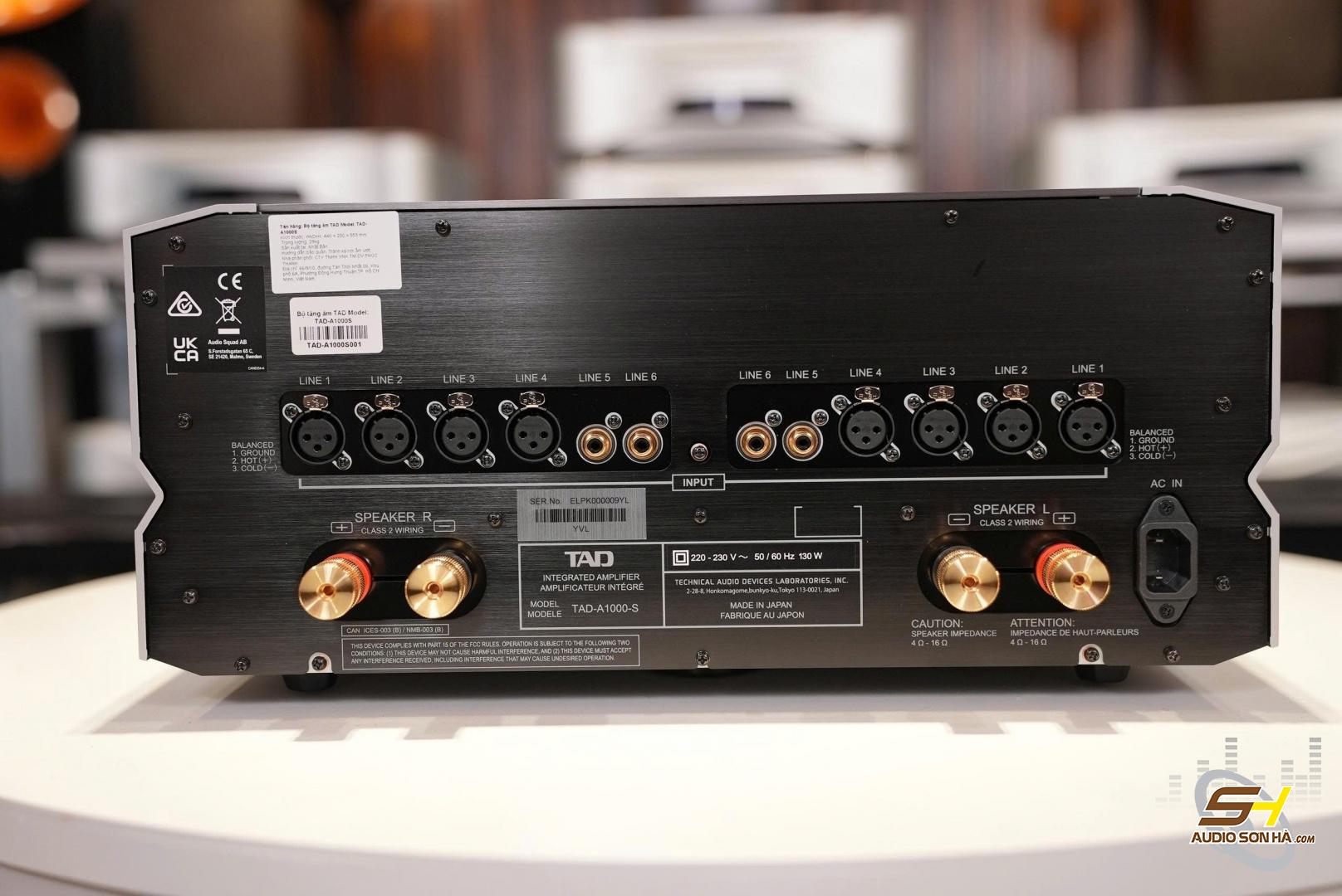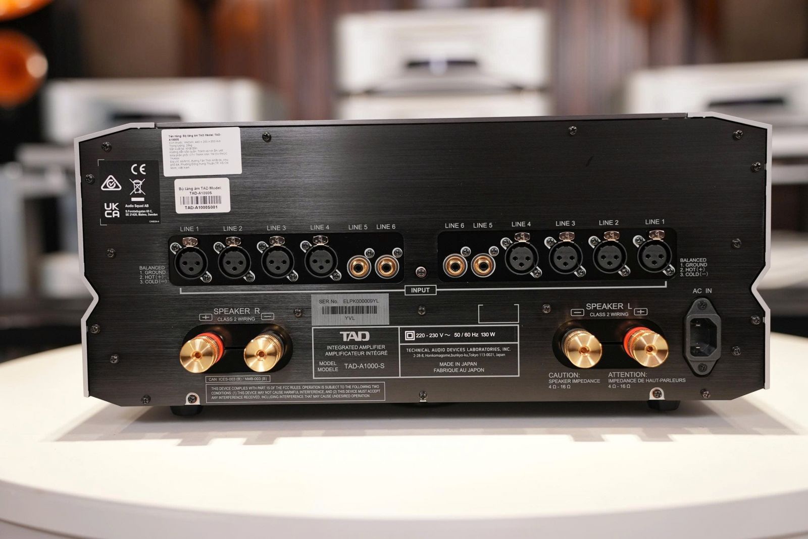 Mạch tiền khuếch đại, mạch khuếch đại công suất, biến áp và mạch điều khiển của TAD-A1000 được tách biệt vật lý thành bốn khoang riêng biệt bên trong vỏ máy. Cấu trúc bên trong bốn khoang này giúp bảo vệ toàn bộ thiết bị khỏi các rung động bên ngoài và cung cấp điện thế nối đất mạnh mẽ và ổn định. Đặc biệt, phần nguồn điện được che chắn cơ học và điện để giảm thiểu nhiếp âm và tăng cường độ tinh khiết của tín hiệu. Thân máy chắc chắn của TAD-A1000 được đỡ bởi ba chân, mỗi chân đều được trang bị một gai nhọn ngược bên trong. Thiết kế này cách ly vật lý khung máy khỏi các rung động bên ngoài truyền qua sàn nhà. Sự tiếp xúc tối thiểu giữa TAD-A1000 và bề mặt ngăn chặn các rung động bên ngoài ảnh hưởng đến các mạch và linh kiện bên trong. Thiết kế kiểm soát rung động toàn diện này cho phép tái tạo âm thanh cô đọng và mạnh mẽ hơn, bảo toàn các sắc thái không gian của âm nhạc. Bảng điều khiển phía sau có các đầu nối loa cỡ lớn, chắc chắn, tương tự như các đầu nối được tìm thấy trong các bộ khuếch đại công suất dòng Reference Series. Các đầu nối này giảm thiểu ứng suất cơ học và điện trên cáp loa được kết nối, tăng cường độ ổn định và tối ưu hóa hiệu suất của chúng.