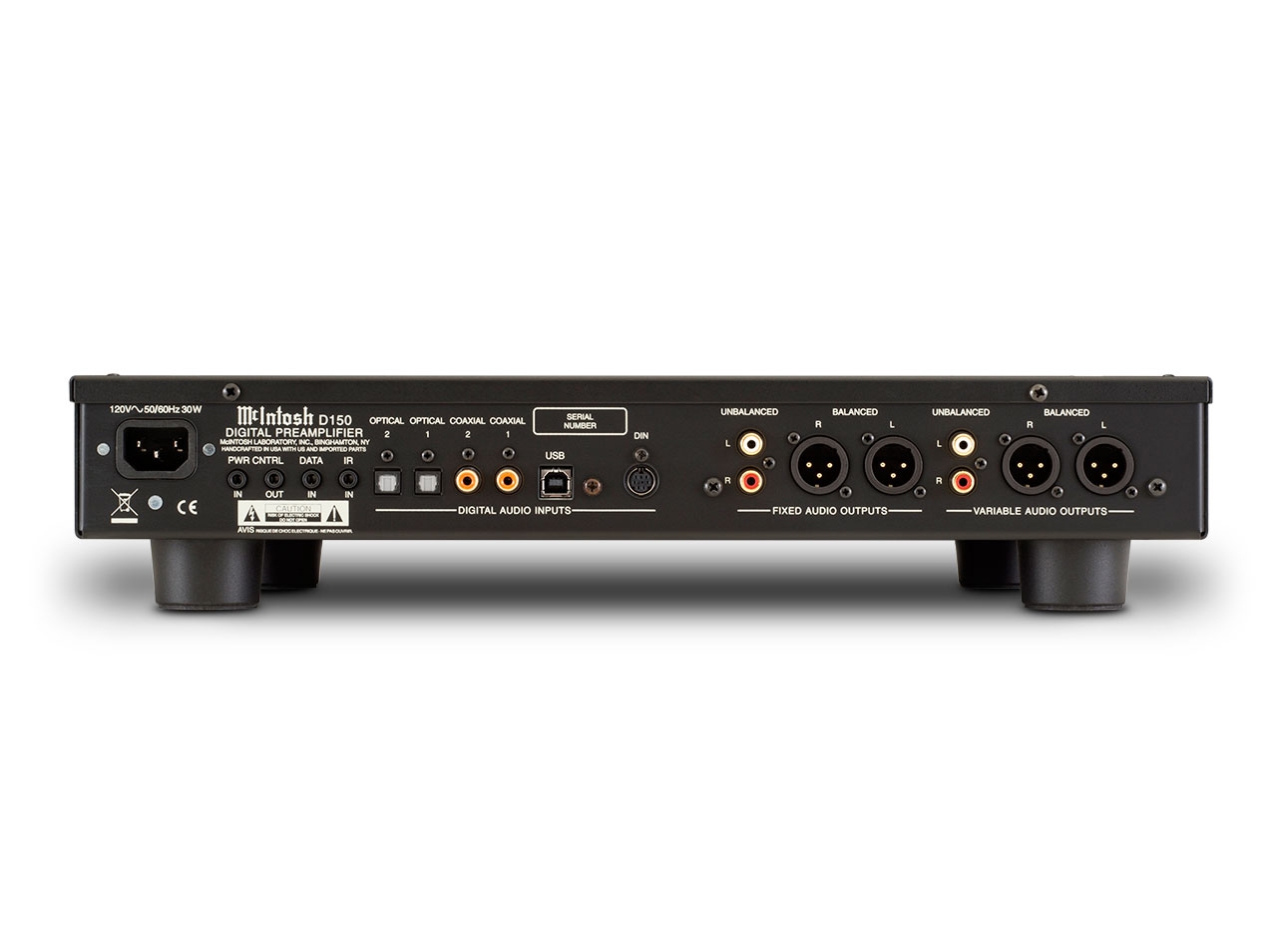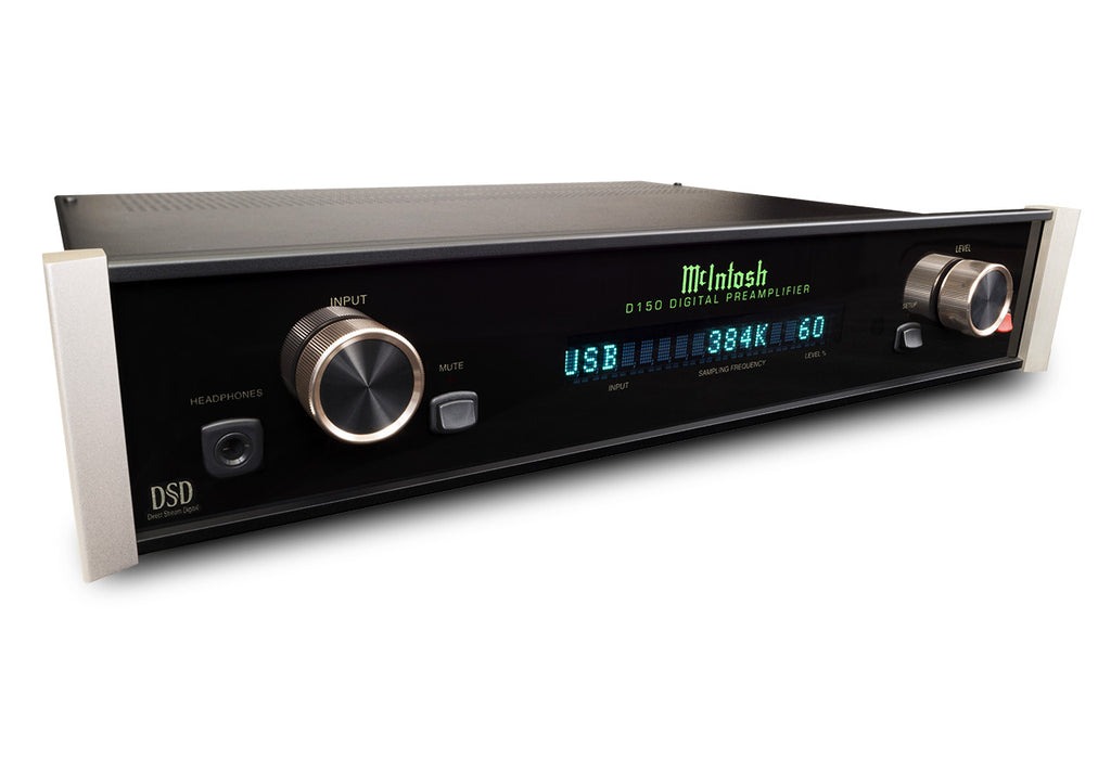 Bộ tiền khuếch đại âm thanh nổi kỹ thuật số D150 mở rộng khả năng âm nhạc kỹ thuật số của McIntosh bằng cách hỗ trợ nhiều định dạng âm thanh kỹ thuật số mới nhất như DSD và DXD. Đầu vào USB chấp nhận tín hiệu lên tới 32-bit/384kHz và hỗ trợ DSD64, DSD128, DXD 352,8kHz và DXD 384kHz. Hai đầu vào đồng trục và hai đầu vào quang chấp nhận tín hiệu lên tới 24-bit/192kHz. Đó là một giải pháp đơn giản để thêm các định dạng nhạc kỹ thuật số mới nhất vào hệ thống hiện có của bạn.