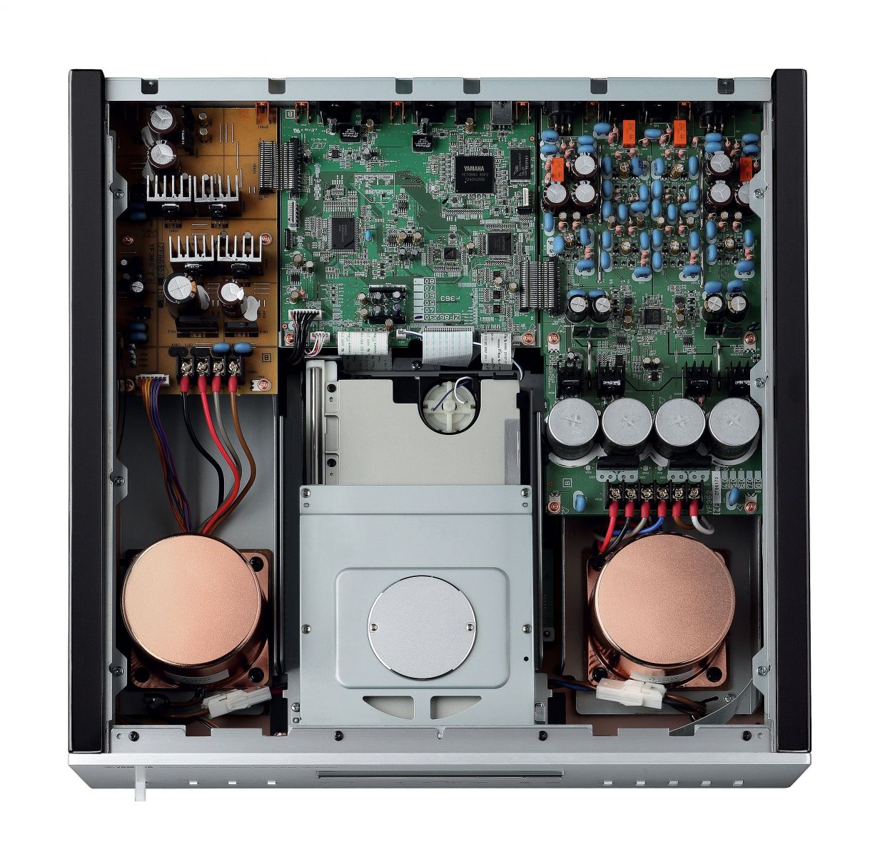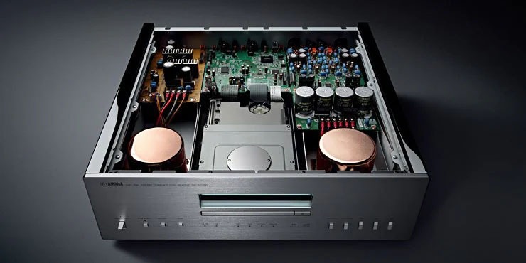 Khay CD được làm bằng nhôm có độ cứng cao. Chất liệu này làm giảm rung động thứ cấp do cộng hưởng của đĩa và đĩa quay động cơ tốc độ cao. Giúp cải thiện độ chính xác khi đọc tín hiệu âm thanh và hoạt động êm ái hơn. Ngoài thiết kế thông minh và kết cấu sang trọng, Yamaha đã tinh chỉnh thao tác đóng / mở bằng cách thêm bộ truyền động dây lưới được thiết kế đặc biệt, giúp vận hành trơn tru và nhẹ nhàng hơn. Chúng tôi tập trung cố gắng để thiết bị mang lại cảm giác vận hành cao cấp phù hợp hoàn hảo với chất lượng âm thanh vượt trội.