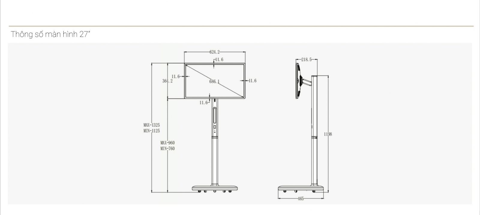 180MM Góc nghiêng màn hình 30°(±15°)