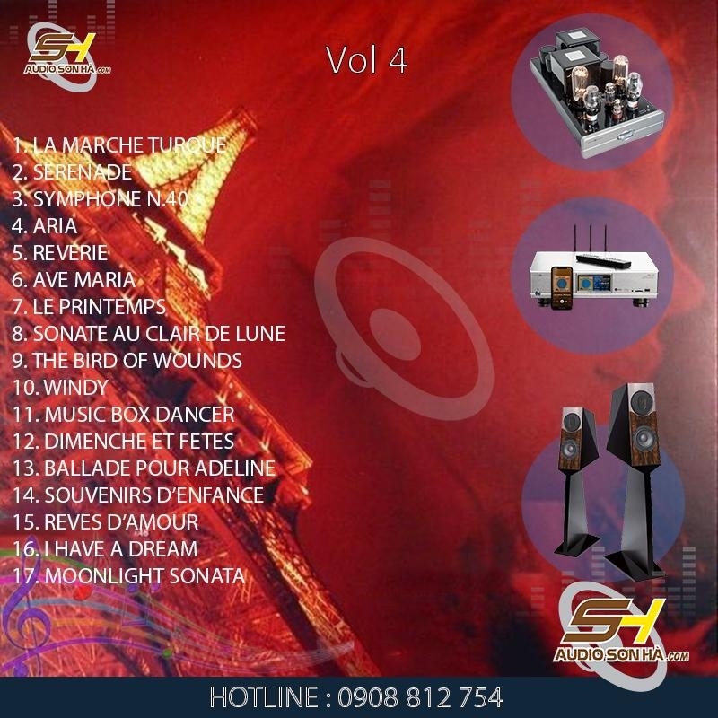 Danh sách bài hát: 1. LA MARCHE TURQUE 2. SERENADE 3. SYMPHONE N.40 4. ARIA 5. REVERIE 6. AVE MARIA 7. LE PRINTEMPS 8. SONATE AU CLAIR DE LUNE | 9. THE BIRD OF WOUNDS 10. WINDY 11. MUSIC BOX DANCER 12. DIMENCHE ET FETES 13. BALLADE POUR ADELINE 14. SOUVENIRS D’ENFANCE 15. REVES D’AMOUR 16. I HAVE A DREAM 17. MOONLIGHT SONATA |