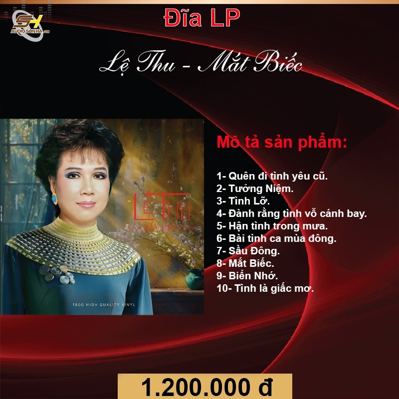 Album Tiếng hát Lệ Thu. Gồm 10 ca khúc chọn lọc nổi tiếng đã đưa Tiếng hát Lệ Thu ghi dấu để đời . " Âm thanh chuẩn Studio.