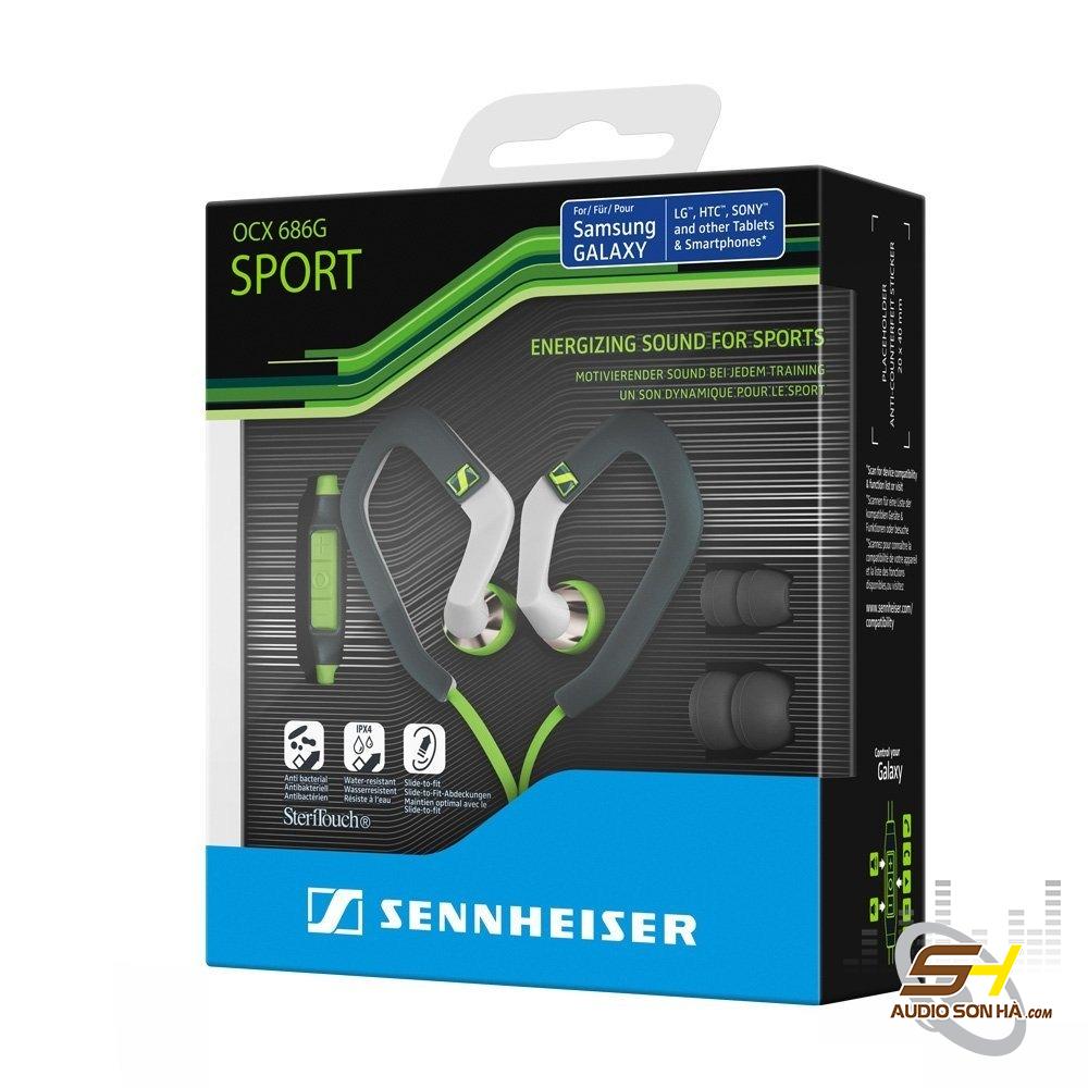 OCX 686G SPORTS Tai nghe được thiết kế chuyên cho tập luyện thể thao, chống nước cấp độ IPX4, chống mồ hôi, với các cặp tips chất liệu silicon kháng khuẩn (kháng khuẩn thương hiệu SteriTouch®) có tích hợp microphone, nút điều chỉnh âm lượng, điều khiển bài hát dành cho phần lớn các loại smartphone, tablet,.. hệ điều hành Android, Windows Mobile, Blackberry,.. như Samsung Galaxy, LG, HTC,..
