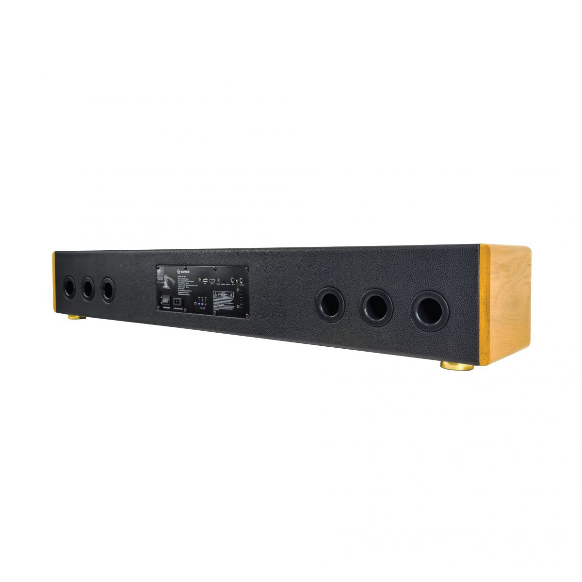 Sumico HS54 được thiết kế dạng loa Soundbar có kích thước chiều rộng 1200mm x chiều sâu 190 x chiều cao 180mm dễ dàng bài trí gọn gàng trên tủ kệ kê đặt dưới Tivi 50 – 55 inch. Loa được bọc da vân đen đẹp mắt sang trọng và hai cạnh bên ốp gỗ sồi tạo điểm nhấn phối sắc tinh tế cùng cụm nút bảng điều khiển màu vàng đồng ánh kim. Mặt lưới bằng chất liệu sợi tinh chế đan dệt với độ dày và khoảng cách sợi dệt được tính toán kỹ lưỡng để bảo vệ loa con bên trong và đảm bảo đặc tính âm học. Phong cách Retro trong thiết kế loa Soundbar karaoke độc đáo của Sumico HS54 tạo nên nét đẹp hoài cổ, giúp loa luôn giữ được vẻ ngoài sang trọng và cao cấp dù qua nhiều năm bài trí sử dụng.