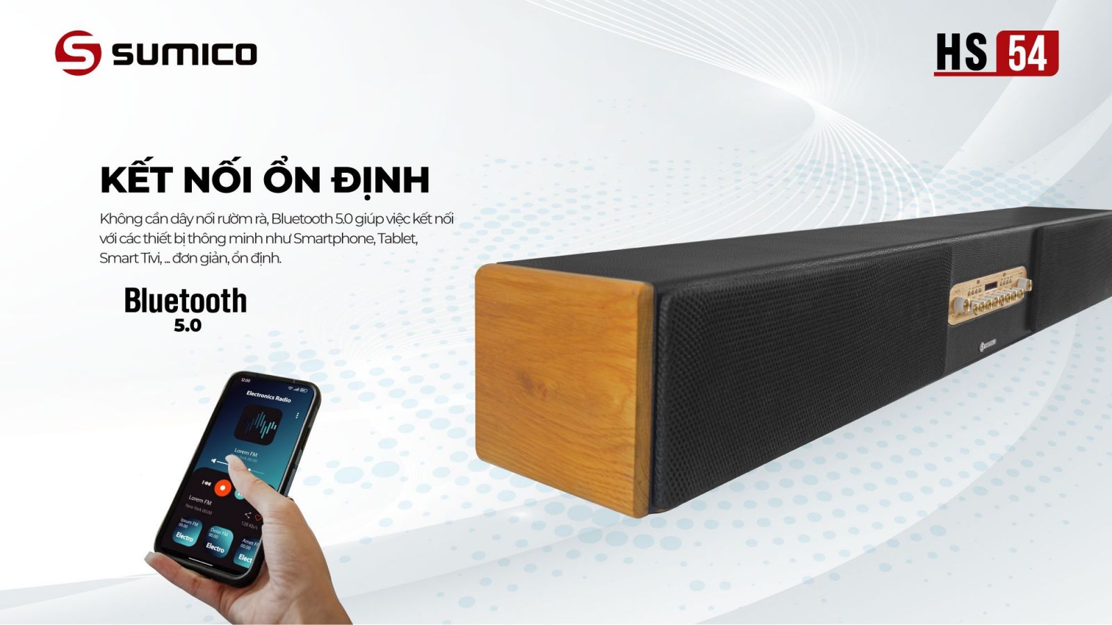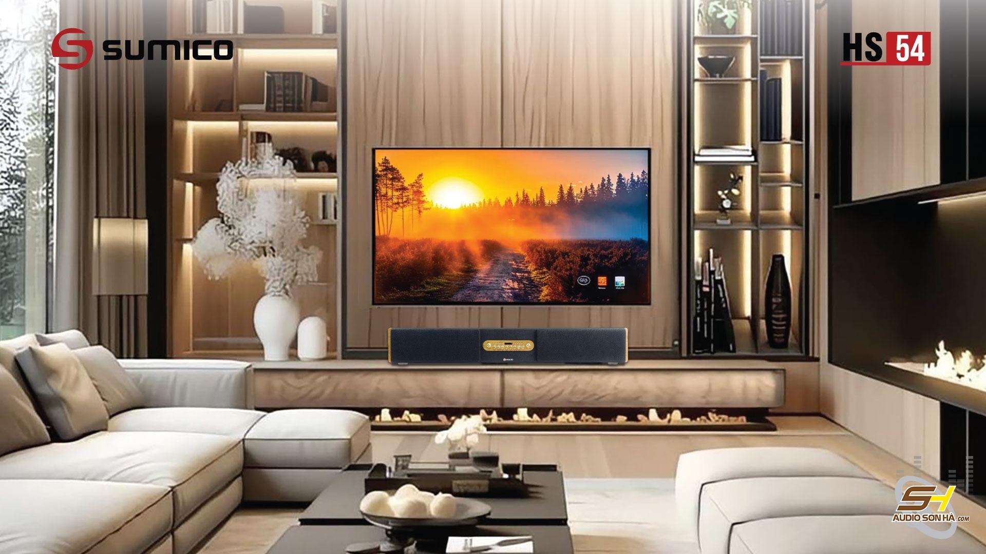 Loa Soundbar Karaoke Sumico HS54 đáp ứng xu hướng nghe nhìn hiện đại ngày nay tập trung vào sự tiện lợi và trải nghiệm thú vị hơn. Sự hiện diện của Sumico HS54 không chỉ là thiết bị giải trí cao cấp mà còn là một vật dụng trang trí nội thất tuyệt đẹp tạo điểm nhấn cho căn phòng của bạn. Sumico HS54 phù hợp bài trí cho nhiều không gian tại gia từ phòng khách, phòng ngủ đến căn hộ studio