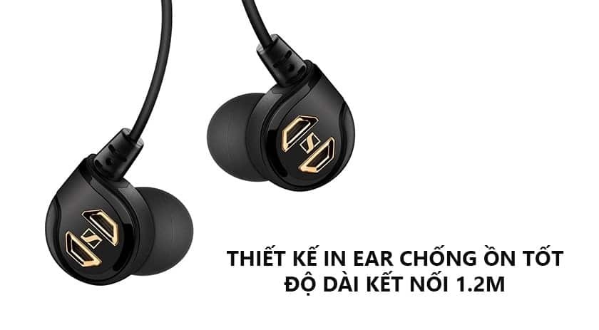 Thiết kế in-ear chống ồn tốt, độ dài kết nối 1.2m
