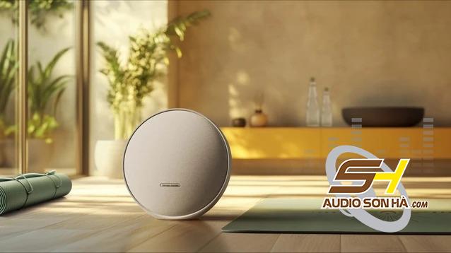 Harman Kardon Onyx Studio 9 - thiết kế biểu tượng của sự tinh tế với hình dáng tròn hoàn hảo, tạo điểm nhấn thẩm mỹ độc đáo cho mọi không gian. Khung nhôm tích hợp không chỉ là tay cầm vững chắc mà còn là chân đế kiên cố. Vải lưới mềm mại nhưng bền bỉ mang đến thiết kế cao cấp và tối giản. Các nút silicon dễ dàng trên bề mặt cho phép bạn điều khiển một cách nhanh chóng và thuận tiện.