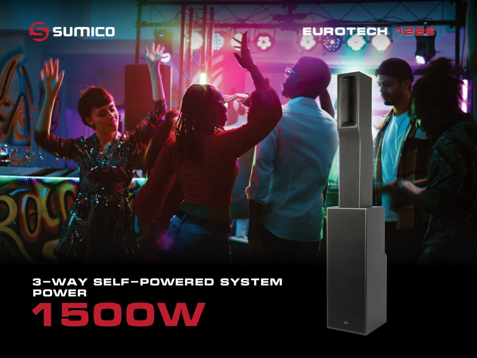 Trong bối cảnh nhu cầu trình diễn chuyên nghiệp ngày càng đòi hỏi chất lượng âm thanh mạnh mẽ, linh hoạt và dễ vận hành, Sumico EUROTECH 1226 là một giải pháp toàn diện cho các sân khấu vừa và nhỏ, sự kiện, bar club, câu lạc bộ hay không gian karaoke cao cấp. Là hệ thống Column Active 3-way tích hợp 3 ampli Class D với tổng công suất 1550W RMS, tích hợp DSP xử lý tín hiệu số và kết nối RS485 Network, EUROTECH 1226 mang đến hiệu suất mạnh mẽ, độ phủ âm tối ưu và khả năng tái tạo âm thanh sống động và trung thực vượt trội trong một cấu hình tinh gọn