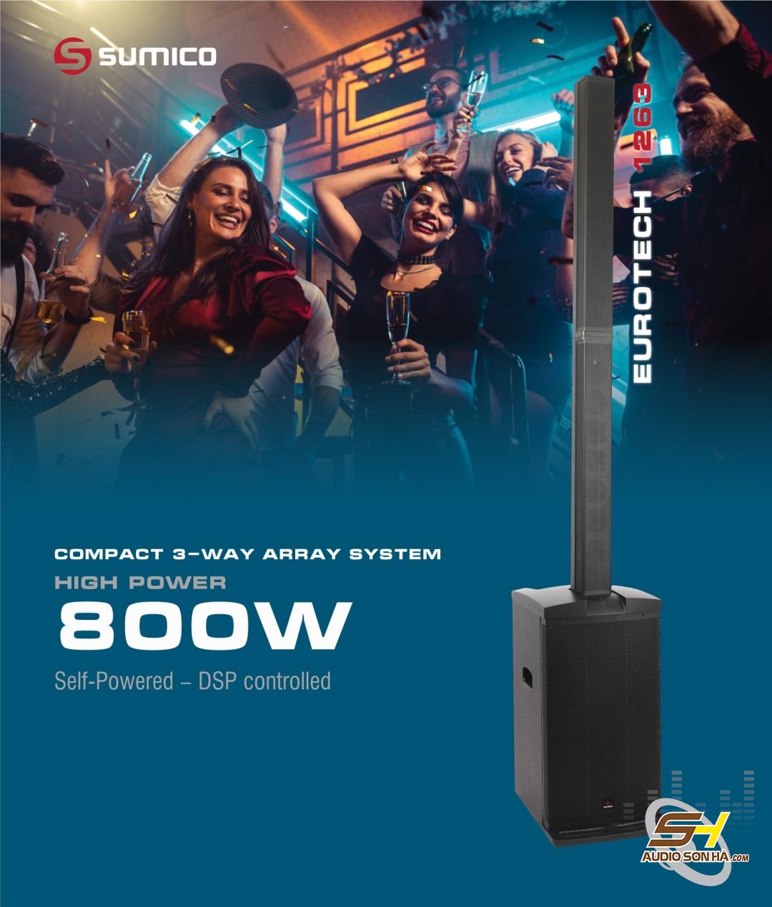 Sumico EUROTECH 1263 là loa Column Array Active di động 3 đường tiếng công suất 800W RMS, điều khiển bằng DSP, là giải pháp âm thanh thanh lịch cho các sân khấu nhỏ và vừa. Với thiết kế gọn nhẹ, Sumico EUROTECH 1263 là lựa chọn tối ưu cho cả nghệ sĩ biểu diễn live, công ty lắp đặt âm thanh chuyên nghiệp cũng như phòng Karaoke chất lượng cao. Loa là lựa chọn lý tưởng cho quán café, lounge, bar, sân khấu hát live và acoustic nhỏ, hội trường đa năng, cửa hàng bán lẻ, khán phòng, khu giải trí, nhà thi đấu, sự kiện biểu diễn lưu động nhỏ hoặc phòng Karaoke cao cấp.