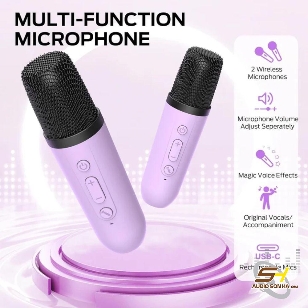 | Kết nối | USB, AUX, thẻ nhớ TF, và chế độ karaoke với 2 micro đi kèm |