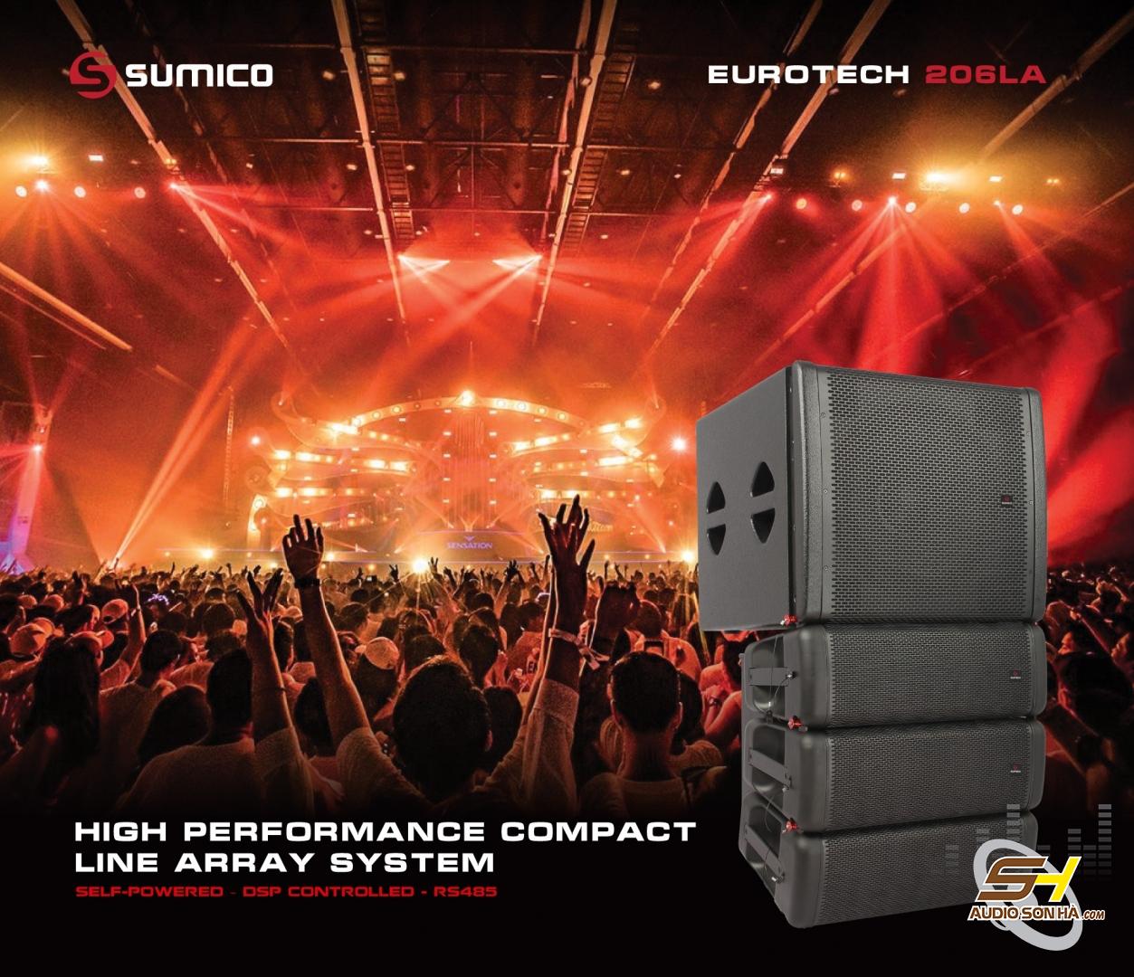 Loa Line Array Active Sumico EUROTECH 206LA công suất thực 350W RMS, tích hợp DSP Processor, điều khiển từ xa bằng máy tính qua cổng RS485 kết nối mạng, lý tưởng cho âm thanh biểu diễn Live Sound, DJ, Bar Club, Ballroom khách sạn, nhà hàng tiệc cưới...