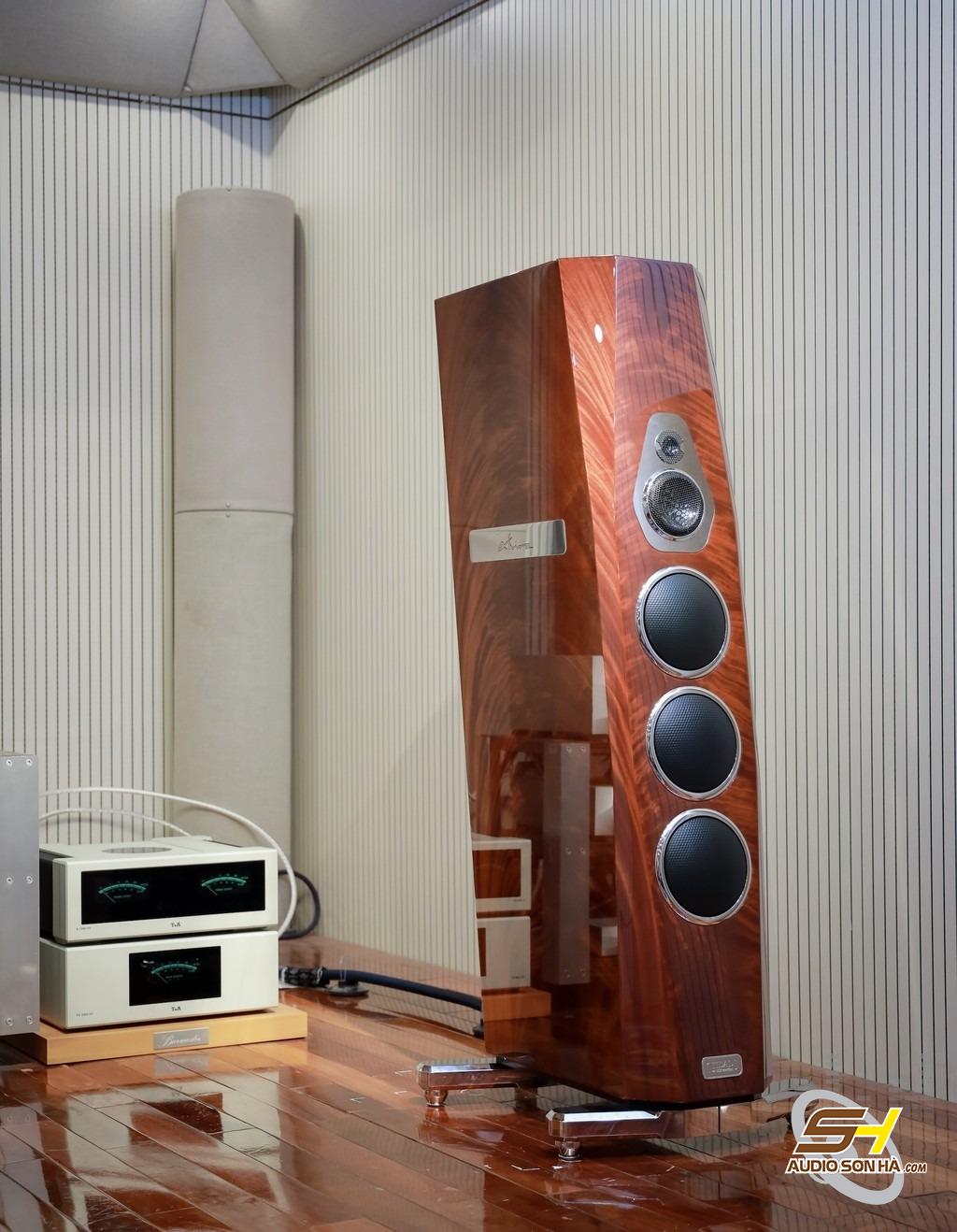 Vốn rất nhạy cảm với rung động nên cả hai driver tweeter và mid màng kim cượng được bố trí cố định trong một tấm thép không gỉ rất dày, được đánh bóng cực phẳng. Nhìn từ bên ngoài, khó có thể hình dung tấm thép này có độ dày lên đến 25,4mm, nó còn được cách ly rung chấn với phần còn lại của thùng loa bằng một vòng đệm bằng chất liệu như nút bần rượu vang.