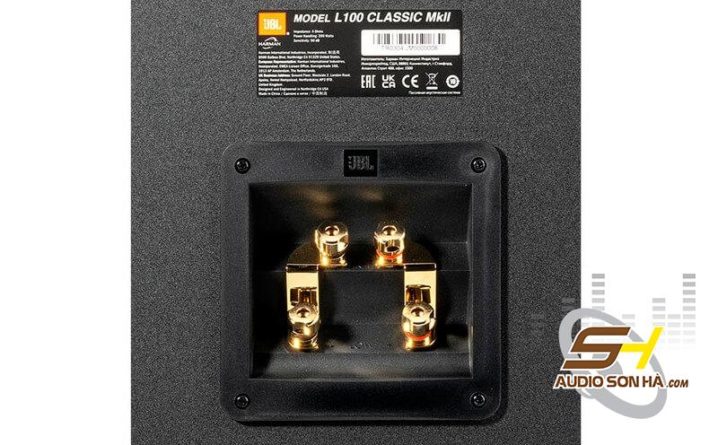 Loa JBL L100 Classic MKII với những cổng kết nối giúp chúng ta dễ dàng kết nối với các thiết bị. L100 MKII có thiết kế phân tần mới cho phép đi dây hai chiều. Điều này cho phép bạn kết nối hai dây loa riêng biệt - một dây cho tần số âm trầm và dây kia cho tần số cao. L100 MKII có các đầu cuối mạ vàng cho các kết nối loa. Ngoài ra, phân tần thụ động sử dụng kết hợp cuộn cảm và tụ điện để gửi dải tần chính xác tới từng trình điều khiển