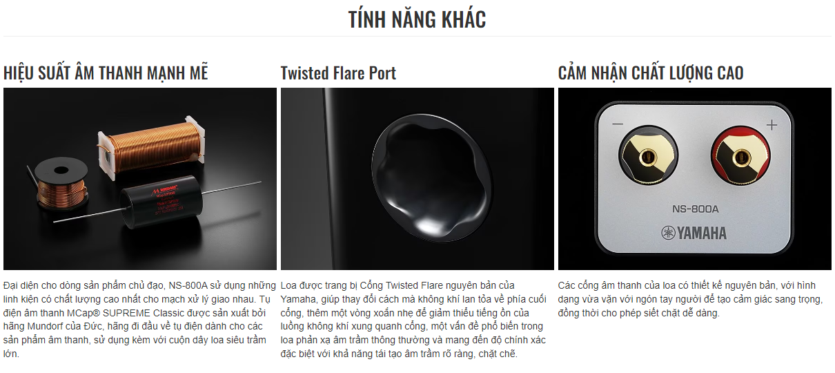 - Bộ giảm âm có bằng sáng chế của Yamaha được tối ưu hóa cho NS-800A