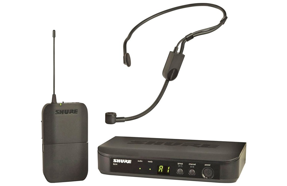Bộ micro không dây cài đầu Shure BLX14A/P31 bao gồm: Máy phát Bodypack BLX1, Máy thu đa dạng BLX4 và Micrô tai nghe PGA31.