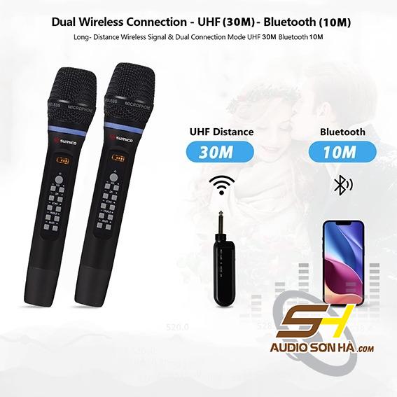 Micro không dây Sumico UHF 300U là dòng micro giá rẻ chất lượng đến từ thương hiệu âm thanh Sumico. Sản phẩm không chỉ sở hữu thiết kế gọn gàng, đẹp mắt mà còn bắt micro và chống hú rít tốt, tích hợp Echo hát nhẹ, cho bạn hát karaoke, thuyết trình, hát live biểu diễn… với trải nghiệm mượt mà, ổn định.