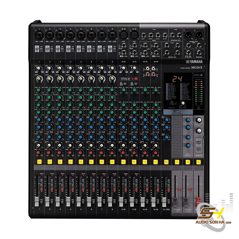 Bàn trộn âm 16 kênh: tối đa 10 Mic / 16 đầu input (8 Mono + 4 Stereo) / 2 Group Bus + 1 Stereo Bus / 4 AUX (bao gồm FX)