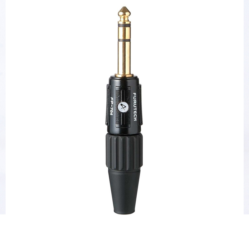 Đầu nối giắc cắm Mono 6.3 hiệu suất cao để hàn, được lắp với các tiếp điểm mạ vàng 24k . Dây dẫn trung tâm Eutectic bằng đồng đúc được xử lý bằng quy trình chống từ trường FURUTECH Alpha α độc quyền.