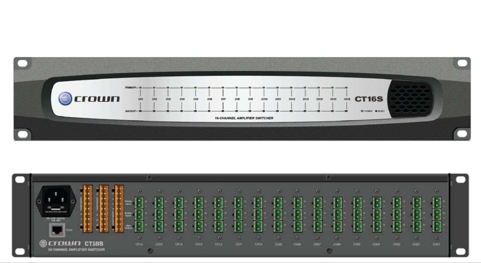 Bộ chuyển mạch khuếch đại CT16S mang lại sự an tâm cho người sử dụng hệ thống âm thanh công cộng rằng hệ thống của họ đang hoạt động. Mỗi bộ chuyển mạch khuếch đại có 16 đầu vào khuếch đại chính (kết nối với đầu ra khuếch đại), 16 đầu vào khuếch đại dự phòng (kết nối với đầu ra khuếch đại) và 16 đầu ra. CT16S có khả năng xử lý dòng điện liên tục 2 Ampe cho công suất lên đến 1000W mỗi kênh.