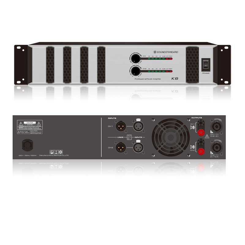 K8 có bộ nguồn biến áp vòng chất lượng cao, áp dụng công nghệ mô-đun nguồn Class I ™ được cấp bằng sáng chế hiệu quả cao và bộ khuếch đại công suất kênh đôi điều chế đơn điệu, 1 bộ Bộ cấp nguồn điều Class I ™ điều khiển hai bộ khuếch đại lớp khuếch đại công suất AB độc lập.