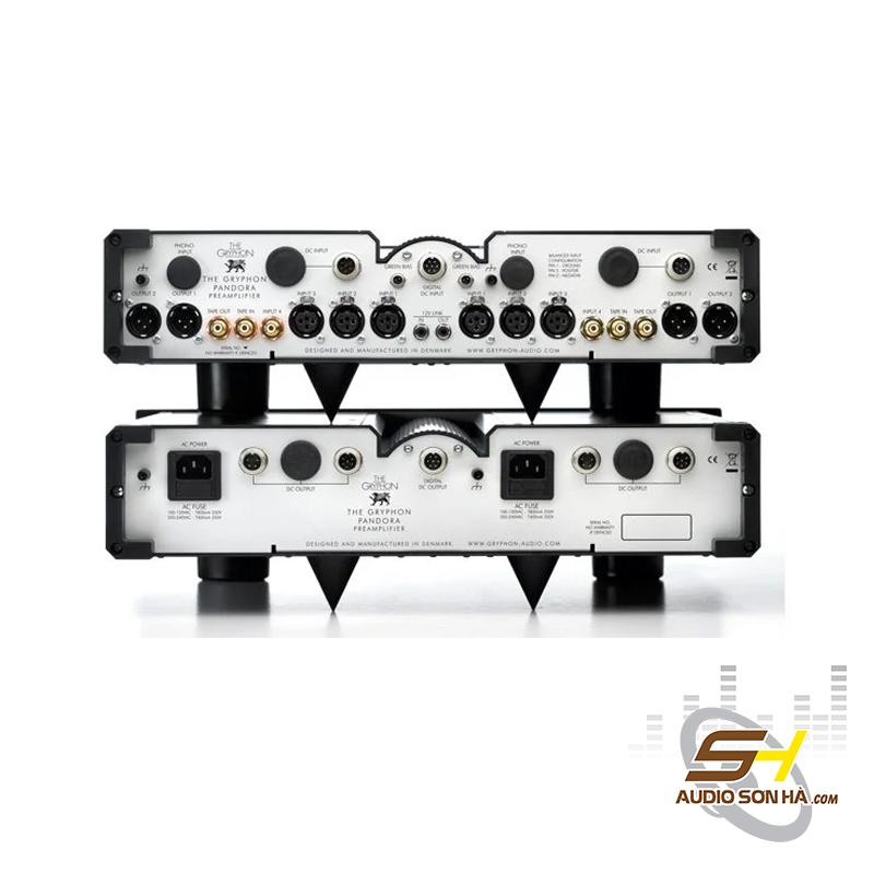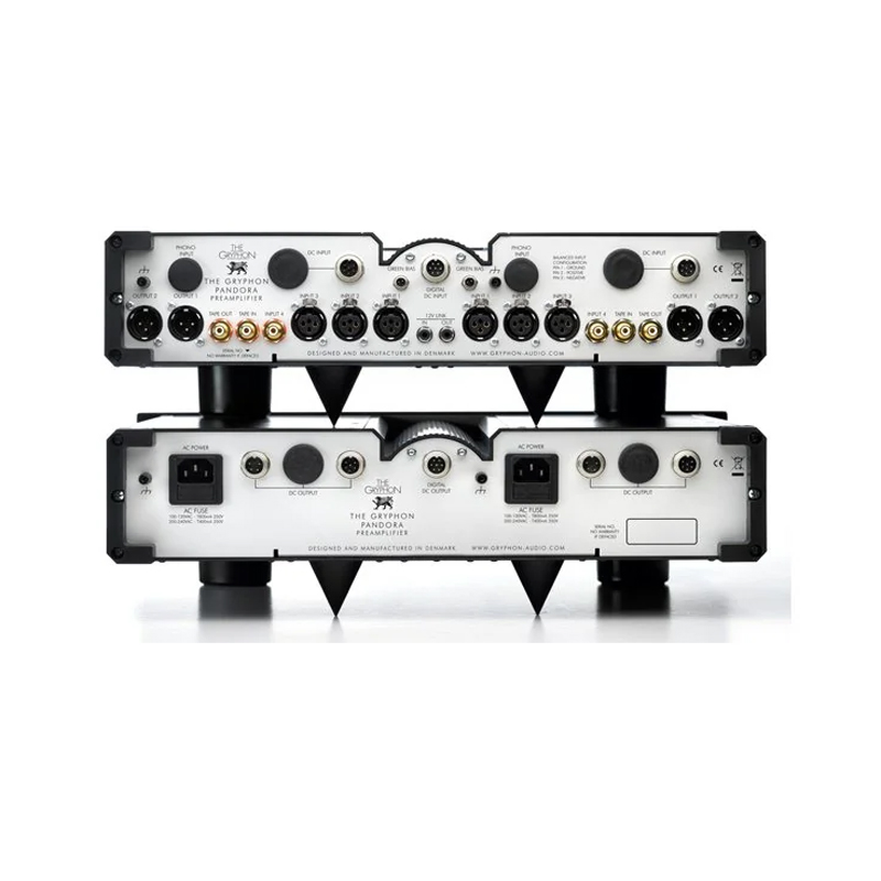 Gryphon Pandora được thiết kế thành 2 module hoàn toàn độc lập, thiết bị thứ nhất (phía dưới) chính là phần cấp nguồn và thiết bị thứ hai (phía trên) chính là mạch tín hiệu. Cả module power supply và pre-ampli đều được chia thành 2 vế trái và phải, hoàn toàn độc lập với nhau. Ngay cả việc cấp điện nguồn AC cho hệ thống này cũng được chia thành 2 cổng cấp nguồn riêng biệt. Việc tách riêng độc lập hệ thống này từ phần cấp nguồn, đầu vào tín hiệu, mạch pre-amp, cho tới mạch xuất âm giúp hạn chế đến mức tối thiểu việc phát sinh nhiễu, méo tiếng và tiếng ồn, cải thiện độ tách kênh và độ cân bằng giữa 2 kênh.