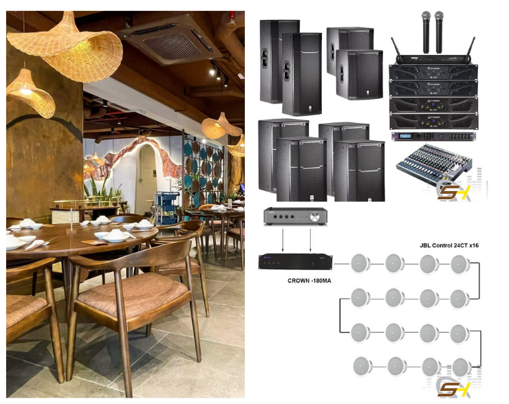 Hệ thống Nhà hàng JBL PRX 325D - CROWN - SOUNDCRAFT EFX12/ 200 m2