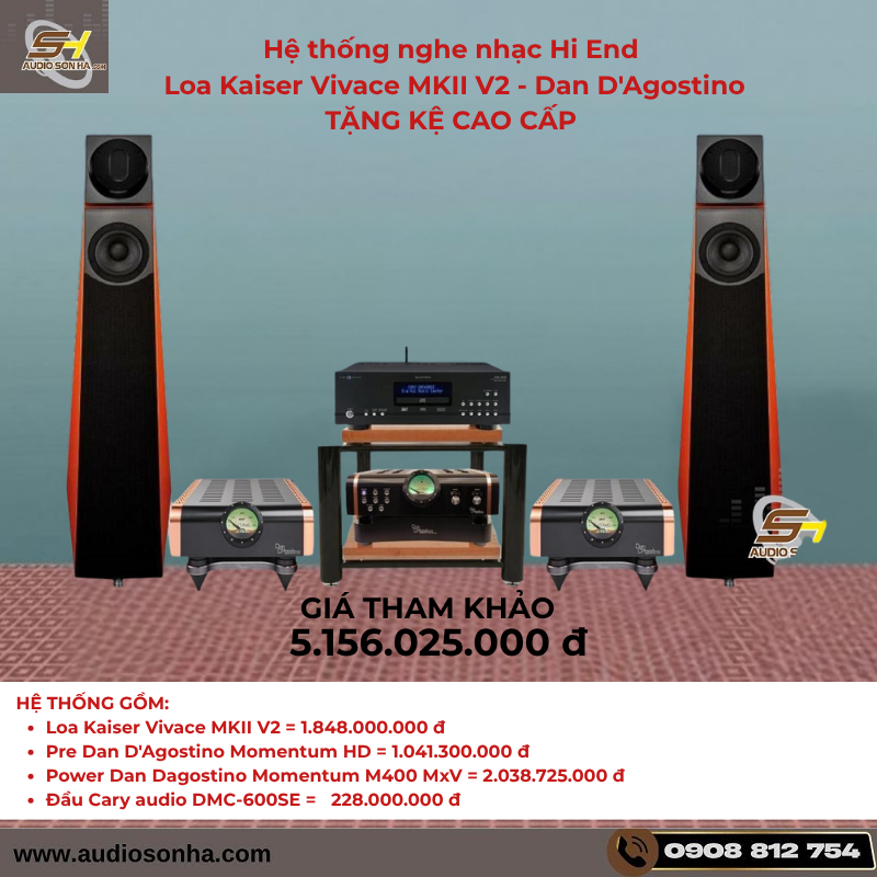 2. Hệ thống nghe nhạc Hi End Loa Kaiser Vivace MKII V2 - Dan D'Agostino/ TẶNG KỆ CAO CẤP