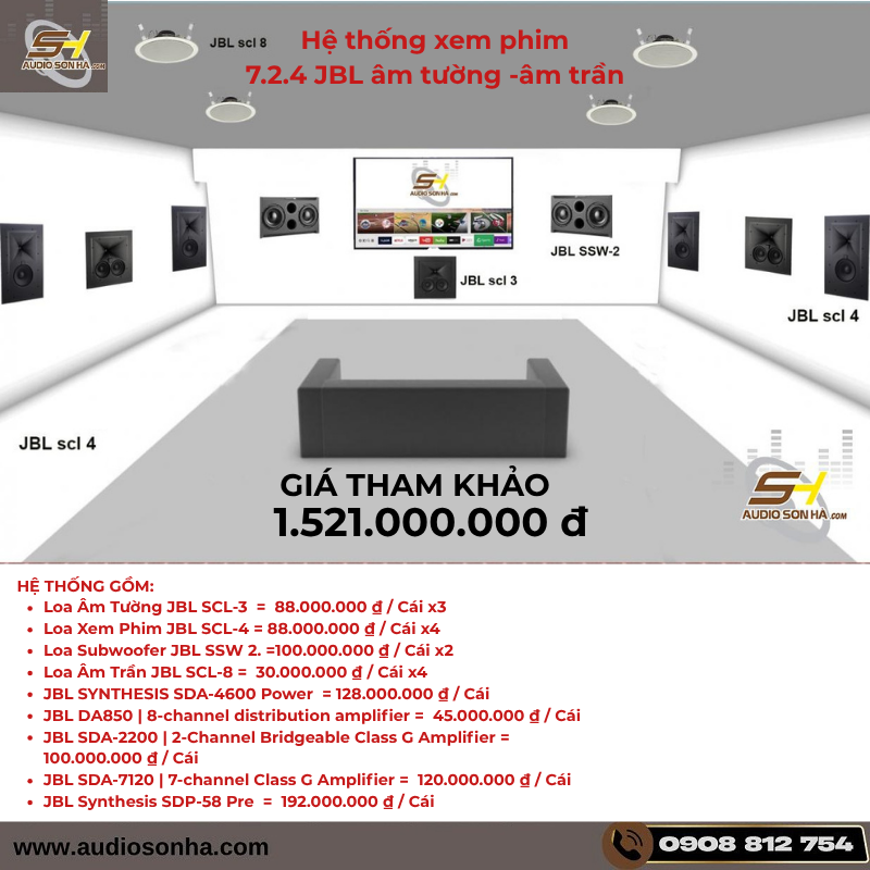 8. Hệ thống xem phim 7.2.4 JBL âm tường -âm trần