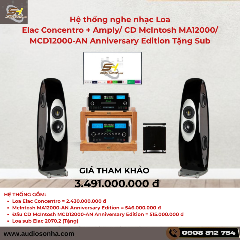 3. Hệ thống nghe nhạc Loa Elac Concentro + Amply/ CD McIntosh MA12000/ MCD12000-AN Anniversary Edition Tặng Sub