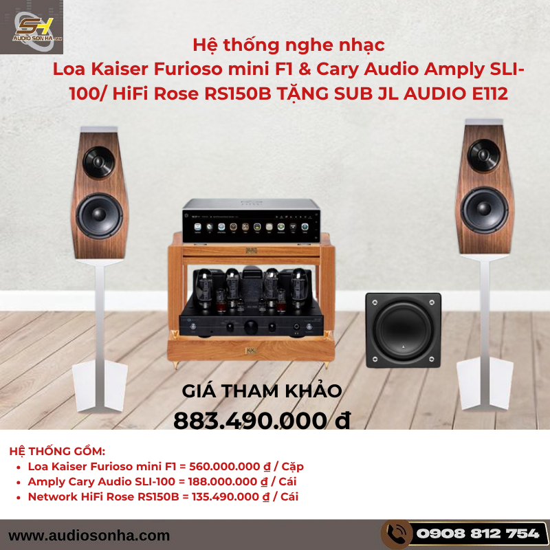7. Hệ thống nghe nhạc Loa Kaiser Furioso mini F1 & Cary Audio Amply SLI-100/ HiFi Rose RS150B TẶNG SUB JL AUDIO E112