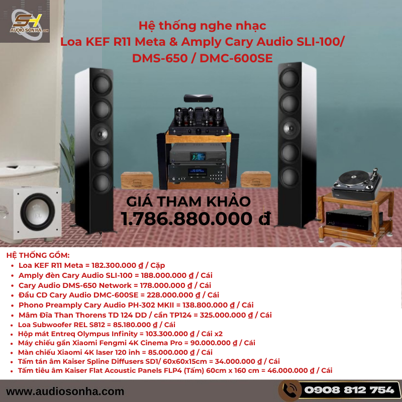 5. Hệ thống nghe nhạc Loa KEF R11 Meta & Amply Cary Audio SLI-100 /DMS-650 / DMC-600SE