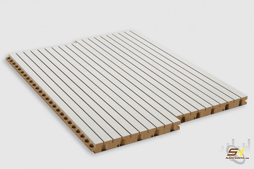 Tấm tiêu âm gỗ đục lỗ/khe: Thường thấy trong các dòng tấm tiêu âm Kaiser cao cấp. Chúng sử dụng nguyên lý cộng hưởng Helmholtz để xử lý chính xác các dải tần mong muốn, đồng thời mang lại vẻ sang trọng cho nội thất.