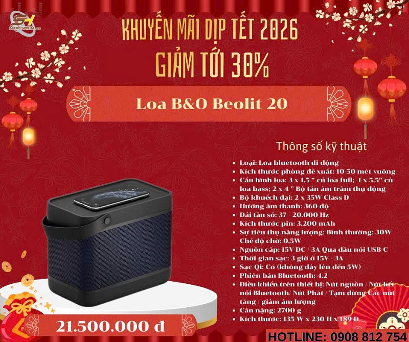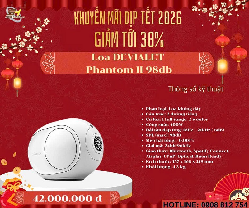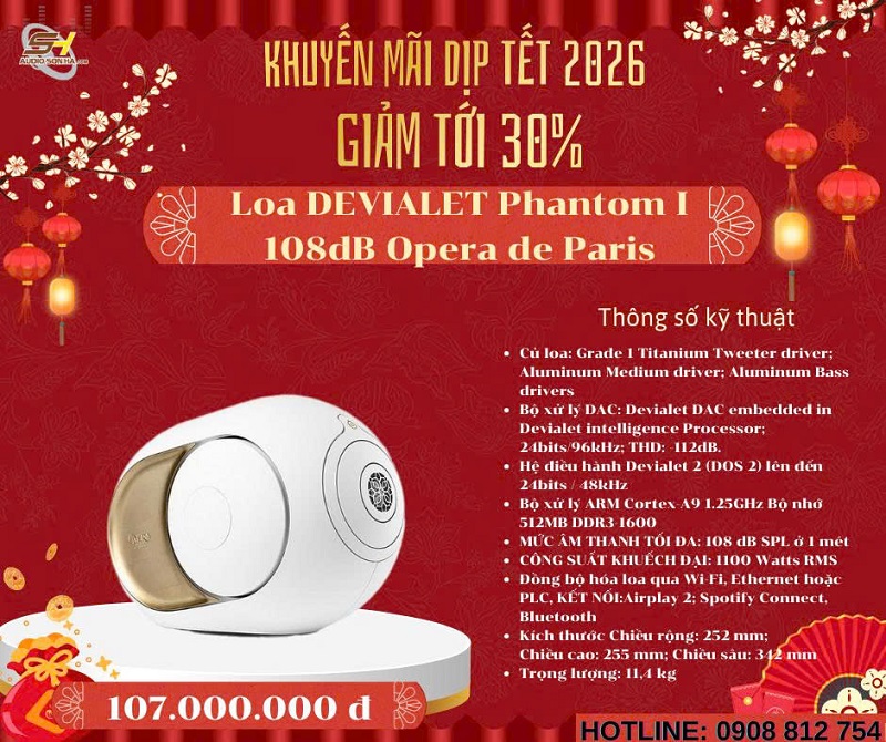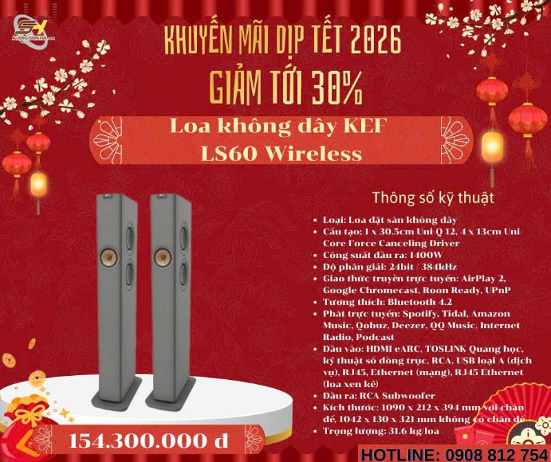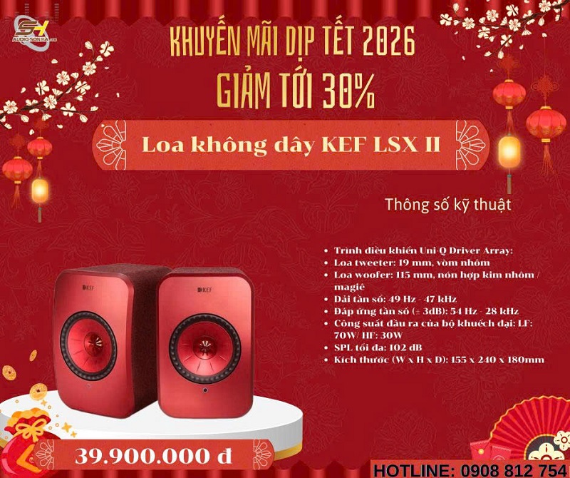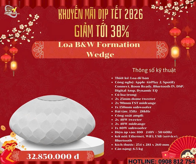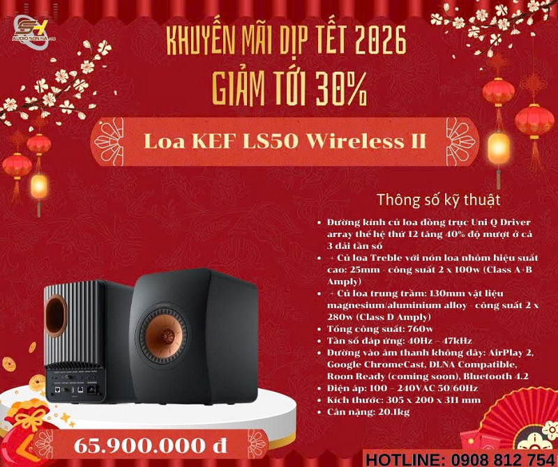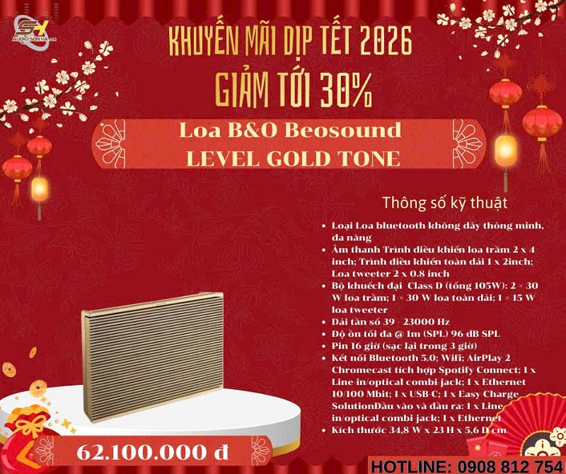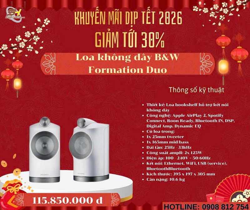Chào mừng năm mới 2026! Để đón Tết Nguyên Đán Giáp Thìn thật rực rỡ và trọn vẹn âm nhạc, Audio Sơn Hà triển khai chương trình khuyến mãi đặc biệt giảm tới 30% cho các mẫu loa không dây cao cấp từ những thương hiệu danh tiếng thế giới: Bowers & Wilkins (B&W), Bang & Olufsen (B&O), KEF, Elac, Devialet, Yamaha và Transparent. Đây là cơ hội vàng để bạn sở hữu hệ thống âm thanh không dây đẳng cấp, chất âm đỉnh cao với giá ưu đãi chưa từng có - chỉ từ nay đến hết Tết!