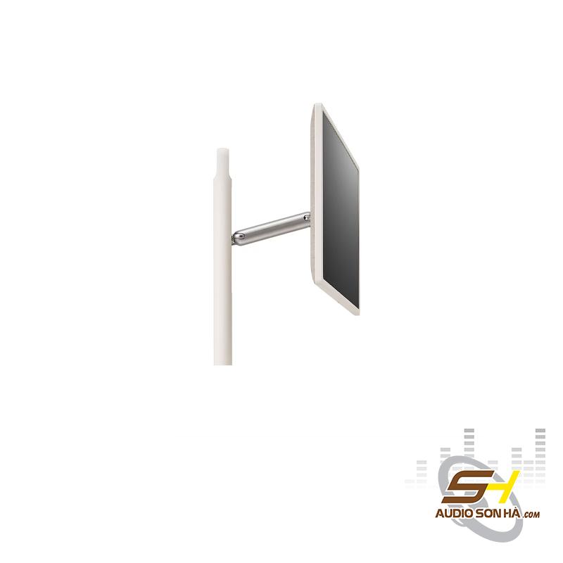Phần chân đế được làm dạng bánh tròn, thiết kế mềm mại, dễ dàng sắp xếp, hoà hợp với nhiều không gian phòng khác nhau. Mặt đáy cũng có các bánh xe để người dùng không gặp khó khăn khi di chuyển chiếc màn hình sang vị trí khác.